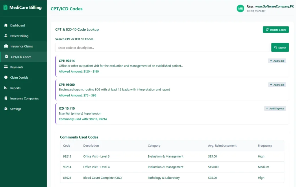 - Code updates → Regularly update CPT/ICD codes