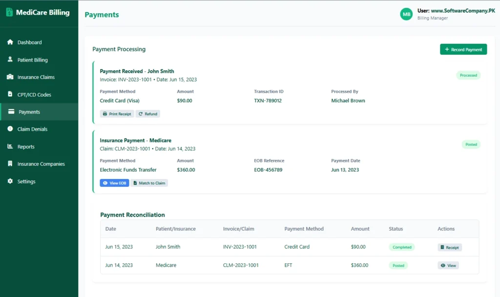 - Record patient payments