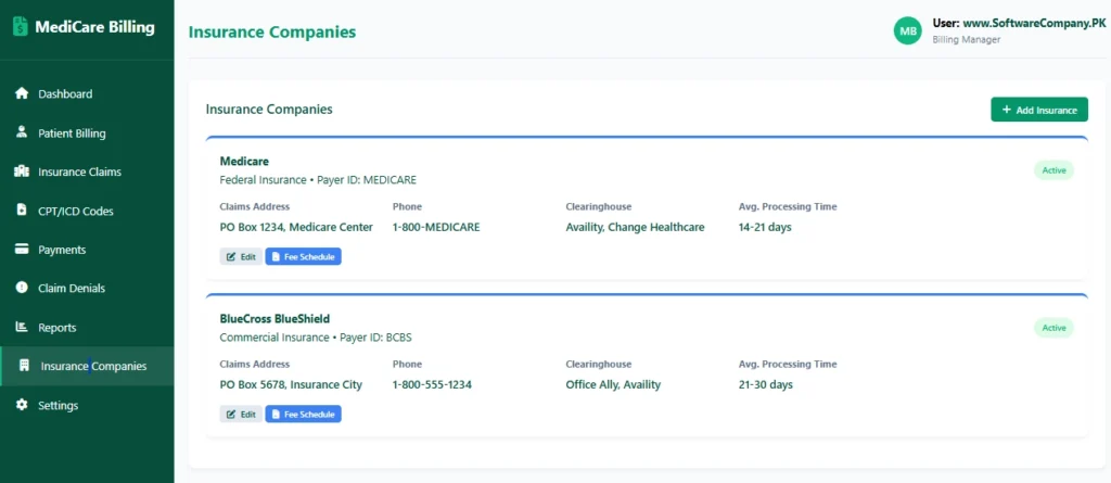 - Choose clearinghouse → System sends to insurance electronically